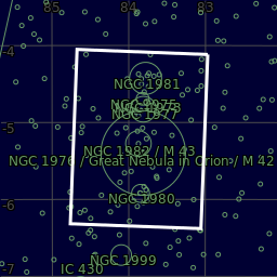 Image contains Great Nebula in Orion, M 43, NGC 1982, NGC 1977, NGC 1980, M 42, NGC 1976, NGC 1975, NGC 1981, NGC 1973, 45Ori, ιOri, θ2Ori, θ1Ori, 42Ori